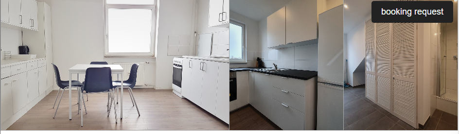 Helle und freundliche Monteurwohnungen in zentraler Lage und mit guter Verkehrsanbindung im Stadtgebiet Düsseldorf/Essen/Wuppertal. Beispielsweise an unserem Standort in Velbert: Drei Wohnungen in zentraler Lage mit jeweils 2 Schlafzimmern (max. 6 Personen), Wohn-/Esszimmer, Küche und Bad. Alle unsere Appartements verfügen über WLAN und sind mit einem TV ausgestattet. Unsere Küchen sind komplett ausgestattet, Waschmaschinen befinden sich in der Wohnung. In der warmen Jahreszeit stehen im Hofgarten Grillmöglichkeiten zur Verfügung. Einkaufsmöglichkeiten im Umkreis von 1 km (z.B. Lidl, Penny Markt), weitere Einkaufsmöglichkeiten in der nahegelegenen Innenstadt (ca. 300 m) mit Fußgängerzone. Dort gibt es auch mehrere Banken und Geldautomaten. Kostenlose Parkplätze stehen auf öffentlichen Straßen zur Verfügung. Ca. 1 km bis zur Autobahnausfahrt A 535 (Richtung Wuppertal) bzw. A 44 Richtung Düsseldorf und Essen). Die A 535 ist direkt an die A 46 (Sonnborner Kreuz) angeschlossen. WLAN ist an allen unseren Standorten verfügbar, ebenso der Fernseher in den Apartments. Unsere Küchen sind mit allen notwendigen Geräten und Kochutensilien ausgestattet. Die meisten unserer Wohnungen verfügen über eine eigene Waschmaschine, ansonsten stehen im Haus Waschmaschinen zur kostenlosen Nutzung zur Verfügung. In den wärmeren Monaten bieten wir Ihnen als Extra zum Entspannen die Nutzung der Terrasse oder des Gartens mit Grillmöglichkeit an. Wenn Sie mindestens einen Monat buchen und monatlich im Voraus bezahlen, erhalten Sie einen Rabatt. Sollte die Personenzahl während der Belegungsdauer variieren, können wir Ihnen auf Anfrage auch eine monatliche Pauschale anbieten, sprechen Sie uns darauf an! Der Standort ist zu weit von Ihrer Baustelle entfernt? Fragen Sie uns, vielleicht können wir Ihnen eine Alternative anbieten, die besser zu Ihnen passt.