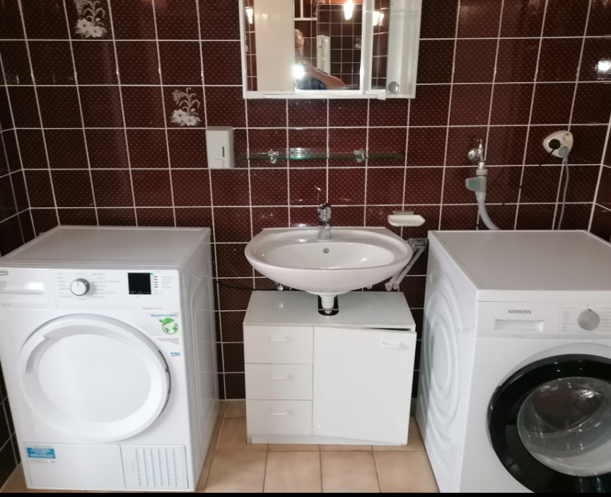 - Room with bed (90x200) incl. bed linen, bedside table, internet up to 400mbit, TV, table and chairs, as well as a small fridge - Bathroom with shower/bathtub, toilet and sink - nice kitchen with stove, oven, dishwasher, refrigerator, ...
