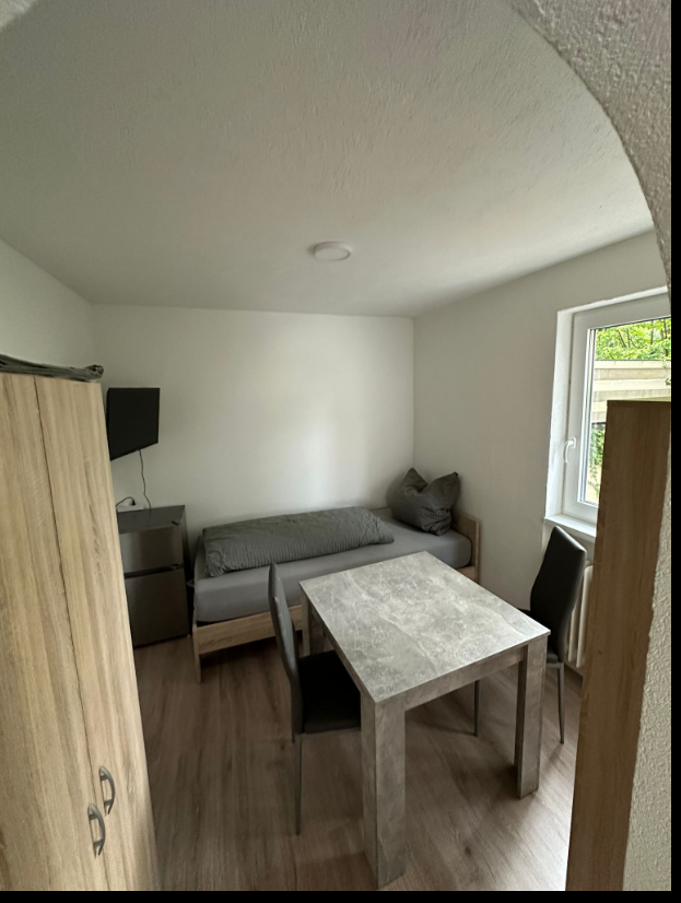 - Room with bed (90x200) incl. bed linen, bedside table, internet up to 400mbit, TV, table and chairs, small fridge and microwave - Bathroom with shower, sink, toilet - Kitchen with dishwasher, fridge/freezer, pots, pans, plates, cutlery etc.