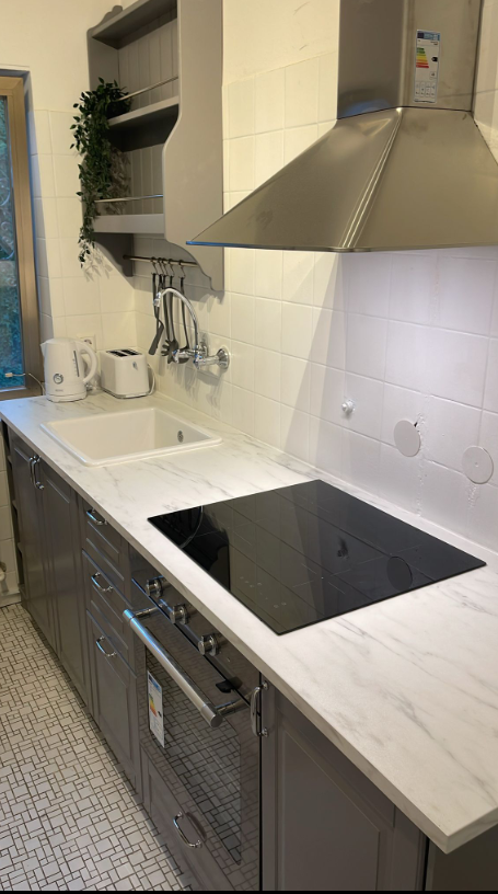 - Room with bed (90x200) incl. bed linen, shelf, internet up to 400mbit, TV, table and chairs, wardrobe, refrigerator shower, toilet shared - Kitchen with stove, microwave, kitchen utensils..