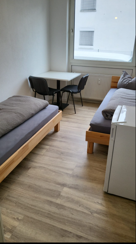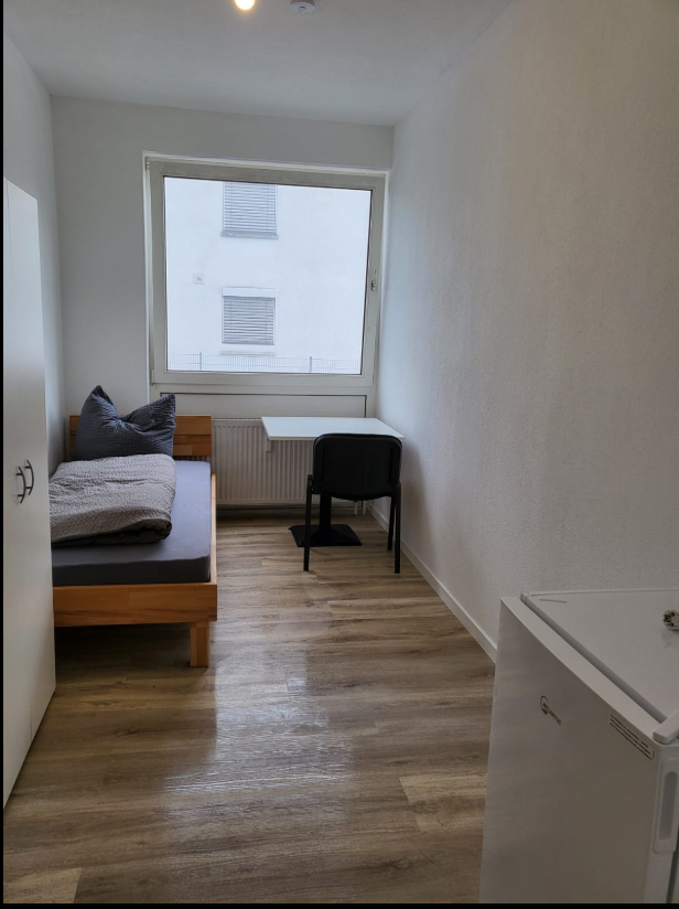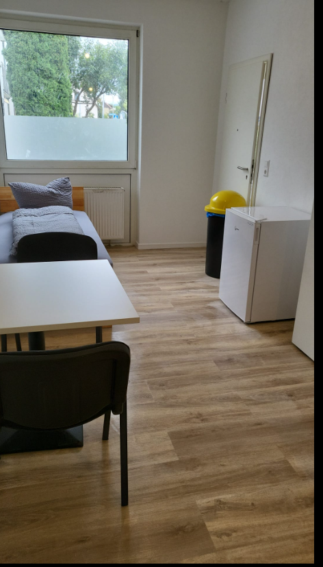 - Room with bed (90x200) incl. bed linen, bedside table, internet up to 400mbit, TV, table and chairs, as well as a refrigerator - Bathroom with shower/bathtub, toilet and sink - Kitchen with stove, microwave, refrigerator, ...