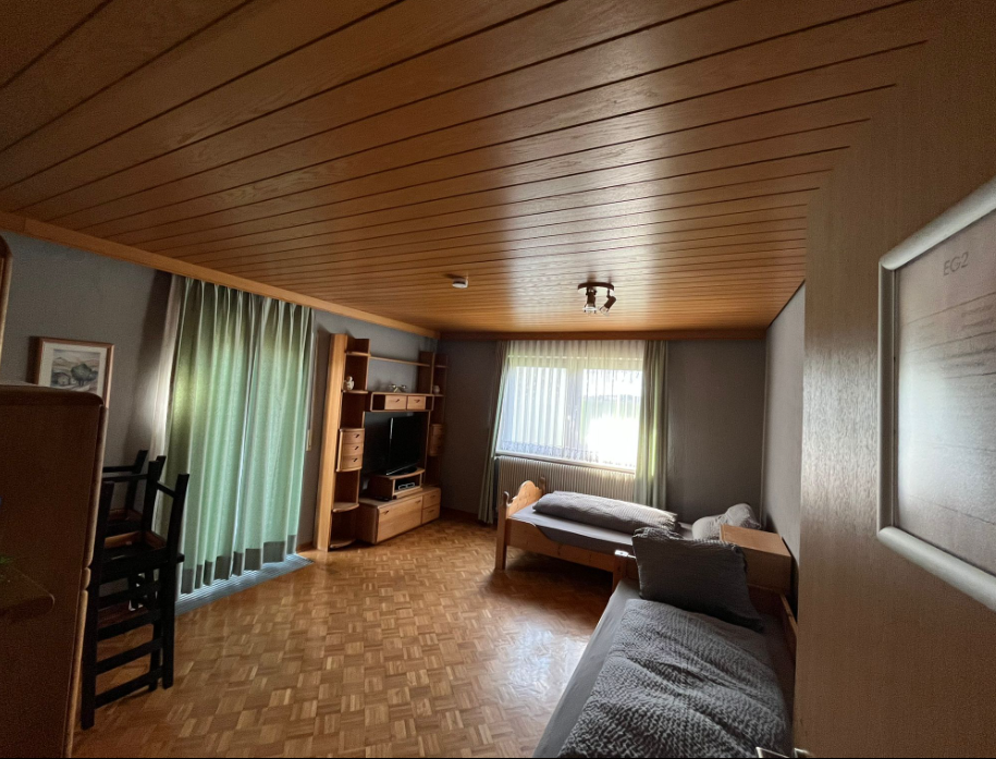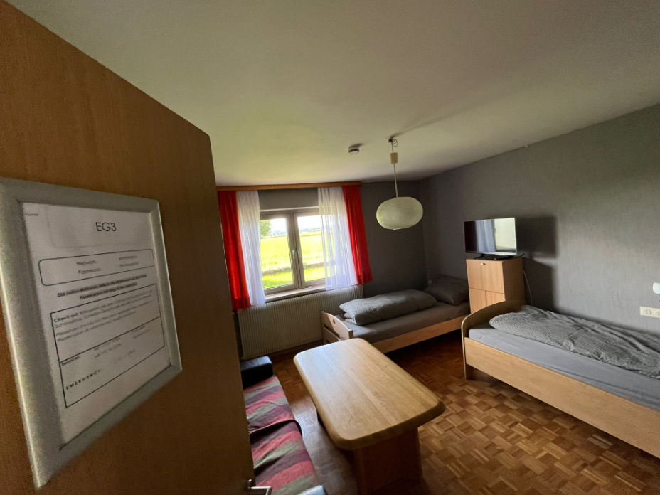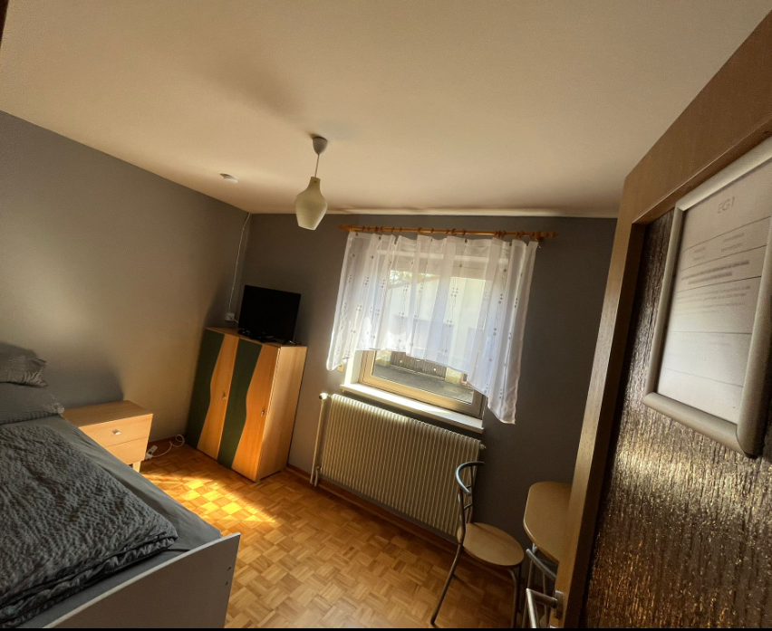 - Room with bed (90x200) incl. bed linen, bedside table, internet up to 400mbit and TV as well as a refrigerator in each room and a microwave - Each room has a bathroom with shower, sink and toilet - Shared kitchen with dishwasher, fridge/freezer, pots, pans, plates, cutlery, etc. - Washing machine and dryer are in the basement