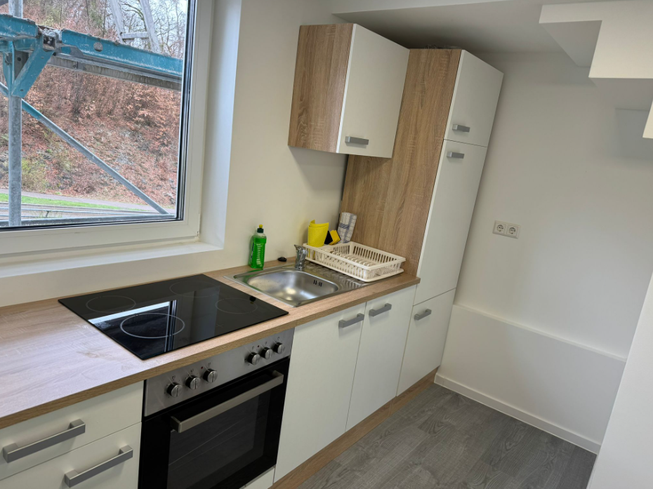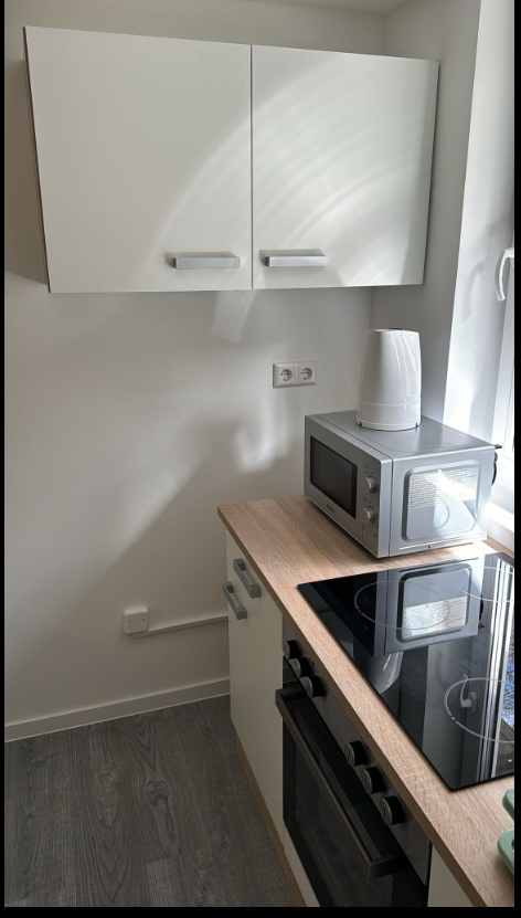 - Room with bed (90x200/140x200) incl. bed linen, bedside table, internet up to 400mbit, TV, table and chairs, as well as a small fridge - Bathroom with shower, toilet and sink - Kitchen with stove, microwave, small fridge, kitchen utensils...