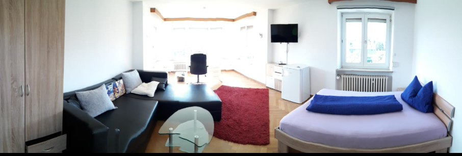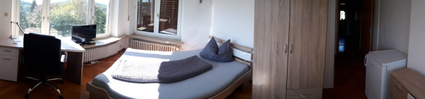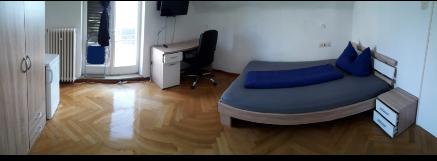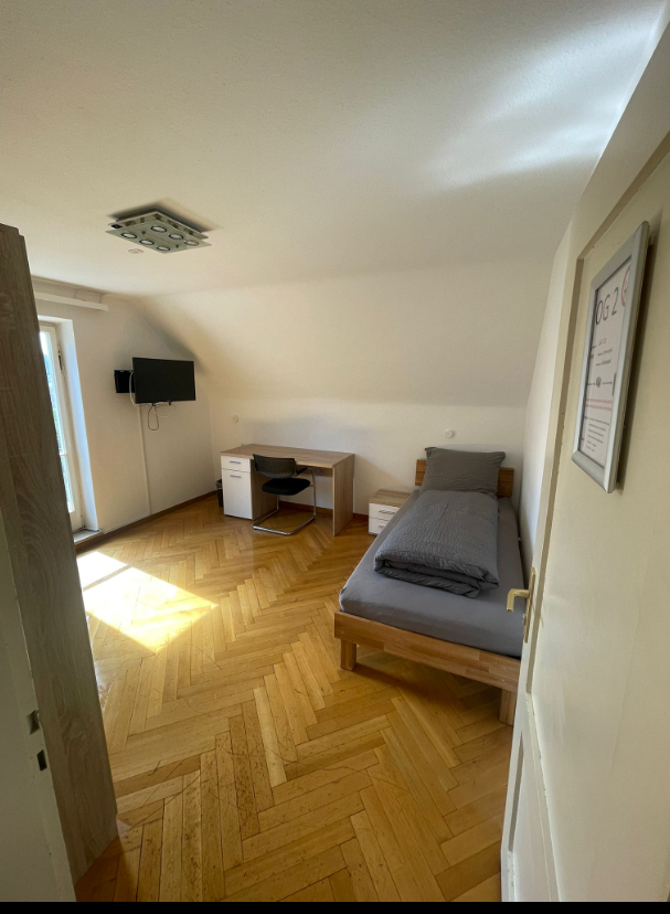 - Room with bed (90x200/140x200) incl. bed linen, bedside table, internet up to 400mbit, TV, table and chairs, as well as a small fridge - Bathroom with shower/bathtub, toilet and sink - Kitchen with stove, dishwasher, refrigerator, ...