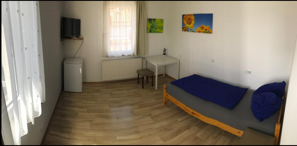 Room with bed (90x200) incl. bed linen, bedside table, internet up to 400mbit, TV, table and chairs, as well as a small fridge