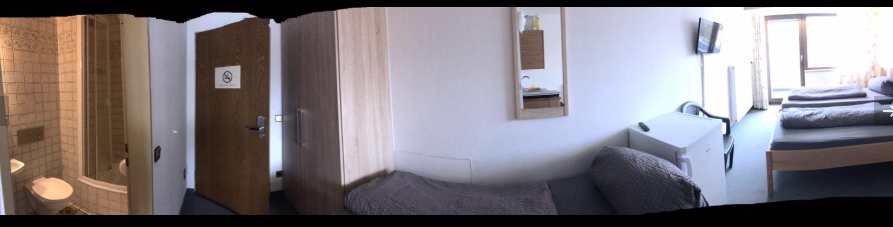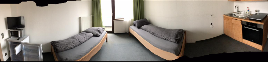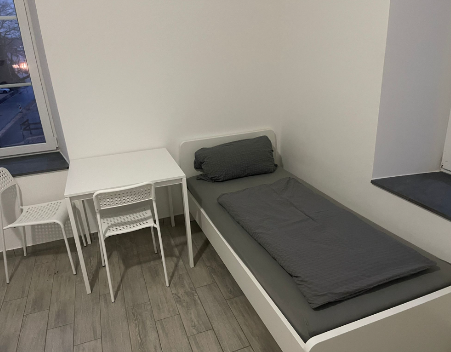 - Room with bed (90x200) incl. bed linen, bedside table, internet up to 400mbit, TV, table and chairs, as well as a small fridge - Bathroom with shower/bathtub, toilet and sink - Kitchen with stove, dishwasher, refrigerator, ...